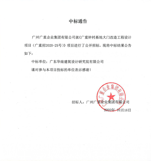 安博平台钟村基地大门改造工程设计项目中标公告