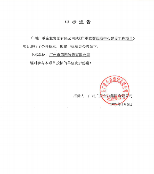 安博平台党群活动中心建设工程中标公告