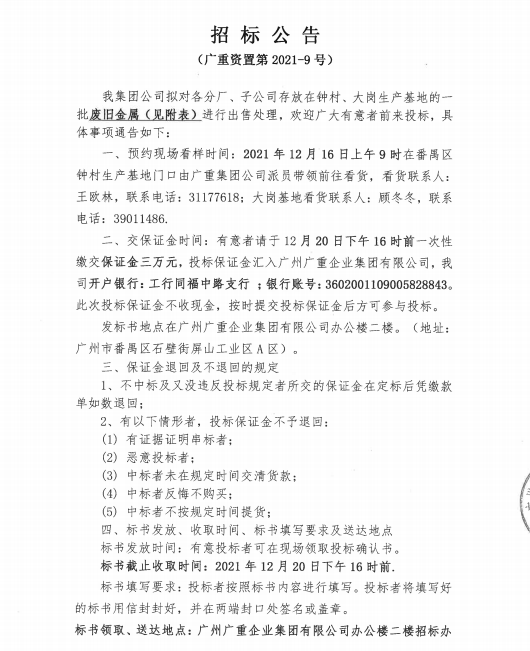 废旧金属处置(安博平台资置2021-9号)