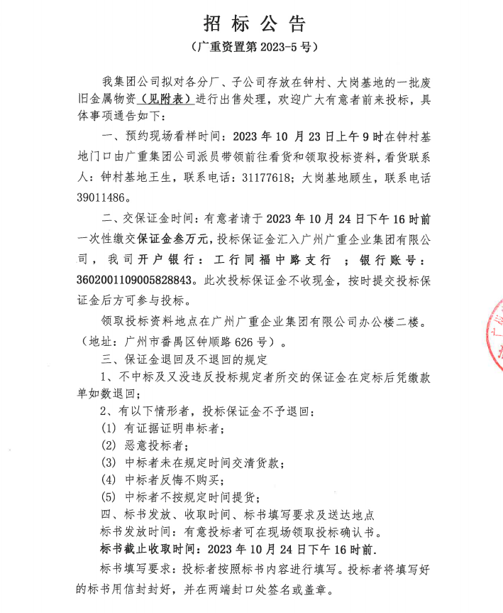 废旧金属物资处置(安博平台资置2023-5号)